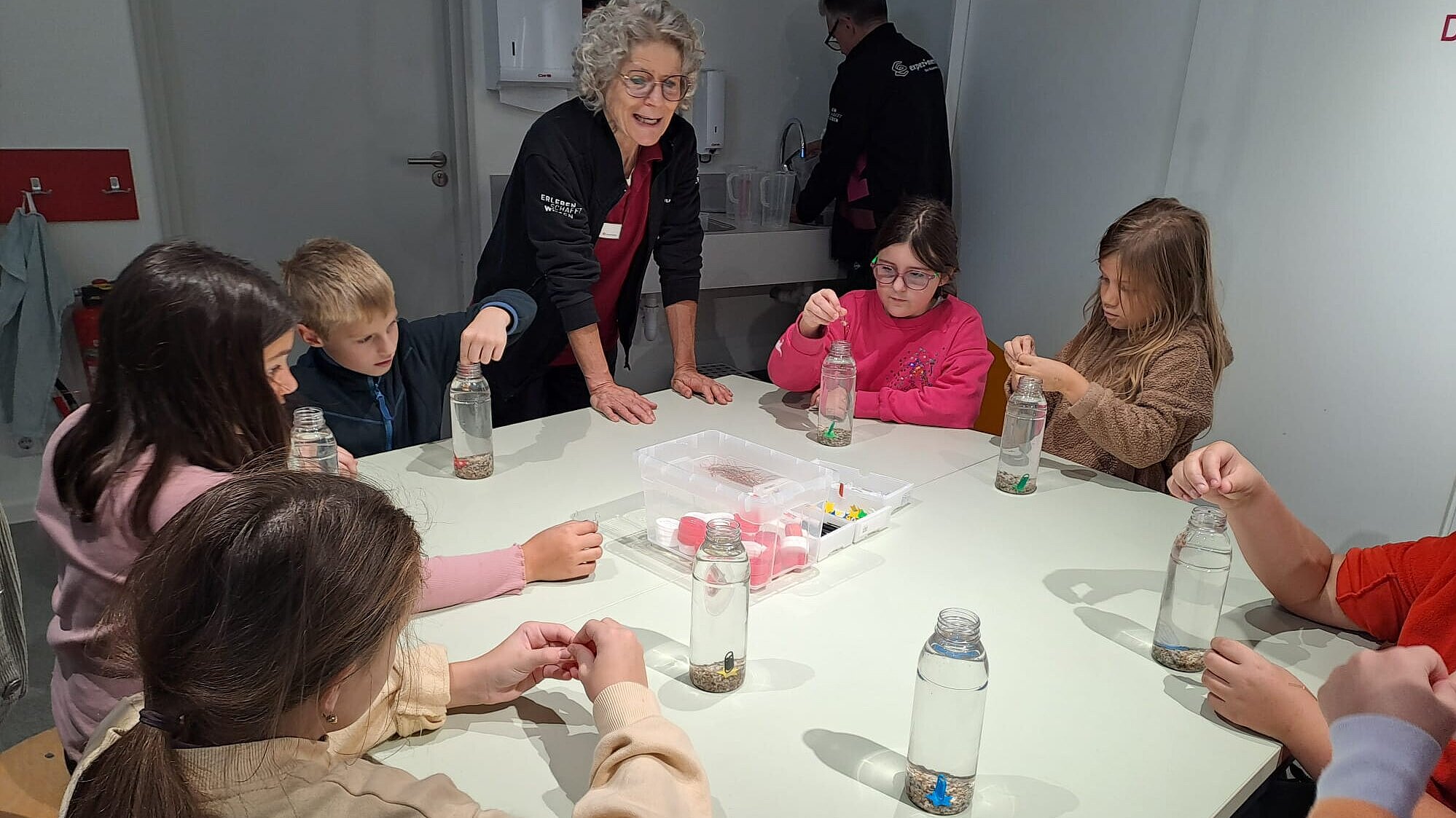 Ein weiterer Höhepunkt war das gemeinsame Basteln von Flaschentauchern, die am Ende sogar mit nach Hause genommen werden durften. Mit viel Geschick und etwas Physik-Know-how lernten wir Kinder, wie Dichte und Auftrieb funktionieren, und konnten unseren selbst gebauten Taucher steigen und sinken lassen.