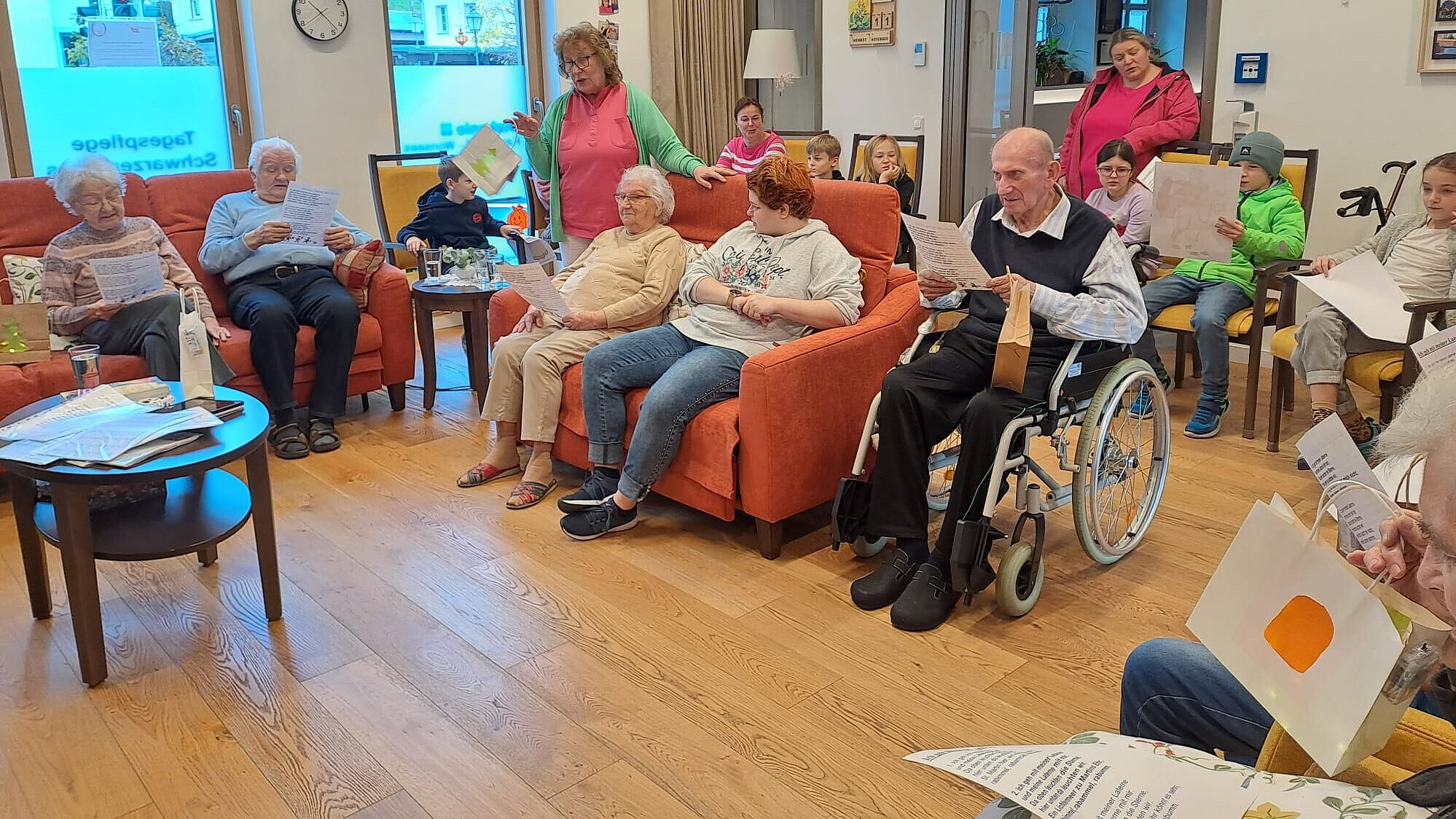 Dieser gemeinsame Moment führte Generationen zusammen. Im Anschluss an die Lesung stimmten Kinder und Senioren noch gemeinsam einige bekannte Lieder zum Martinstag an.