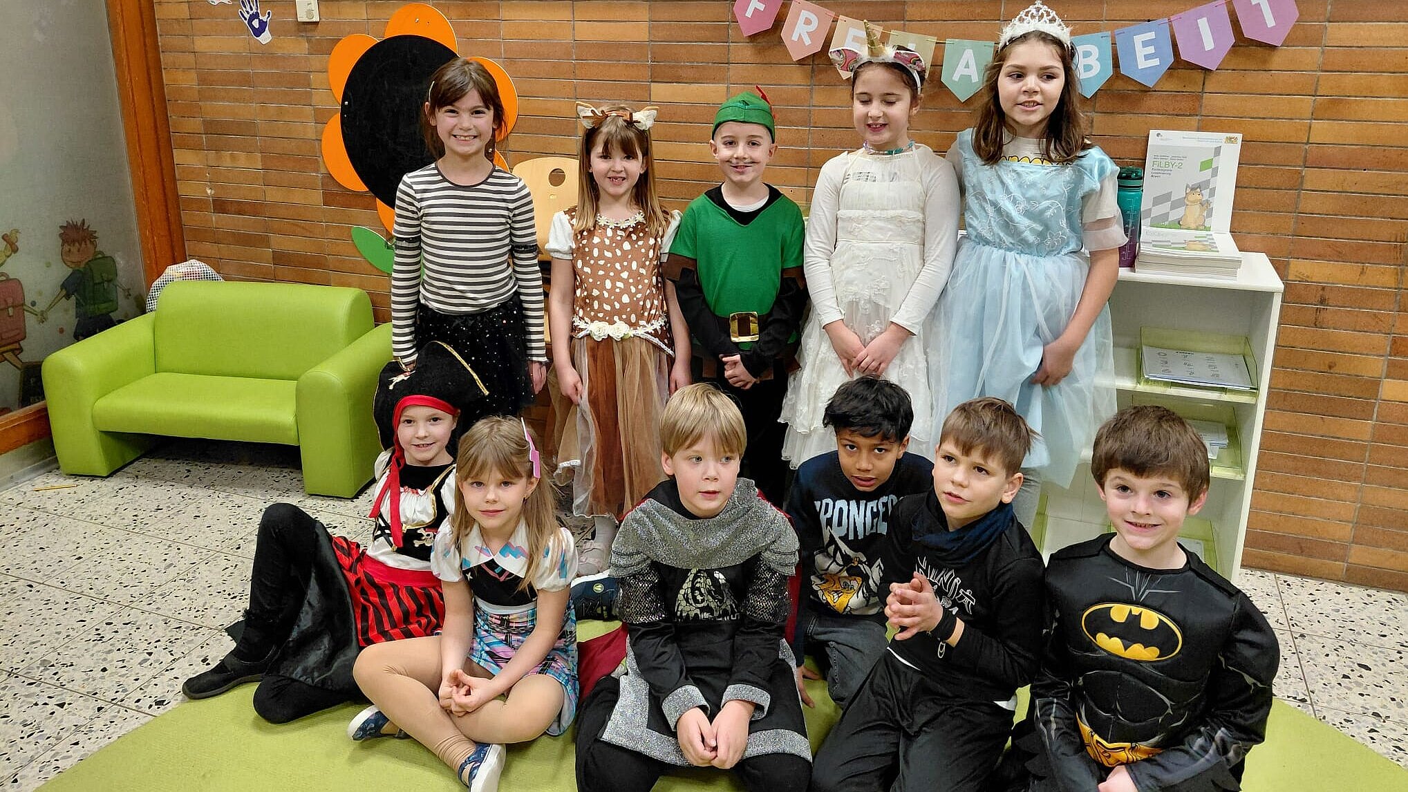 Schon am frühen Morgen war das Schulhaus kaum wiederzuerkennen: Cowboys, Prinzessinnen, wilde Tiere und viele andere fantasievolle Gestalten tummelten sich in den Gängen. Der Startschuss für die Feierlichkeiten fiel mit einer lautstarken und fröhlichen Polonaise, die sich einmal durch das komplette Schulhaus schlängelte, bis auch das letzte Kind in Partystimmung war.